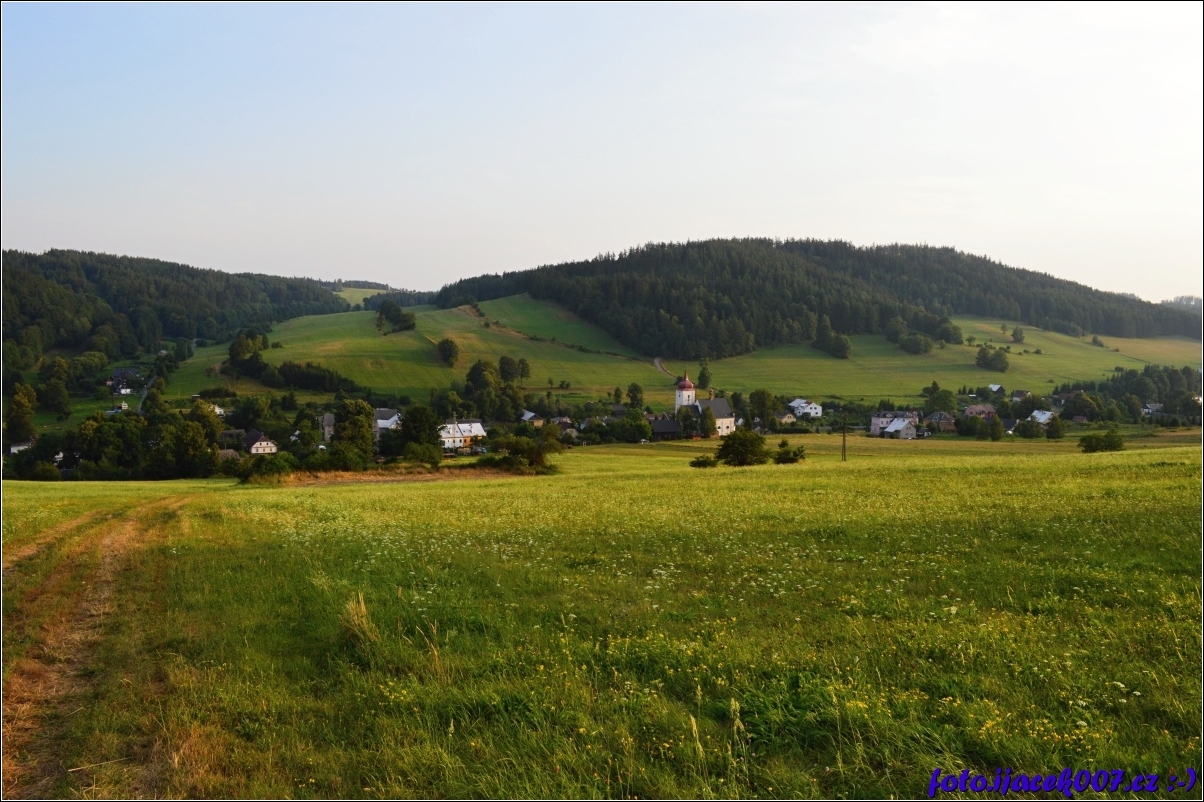 Pohled na prostředek obce z přilehlého svahu.