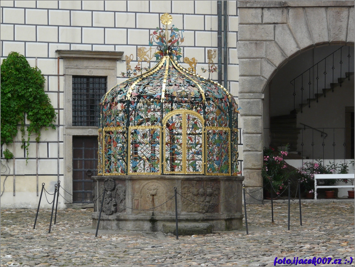 replika kašny na zámeckém nádvoří