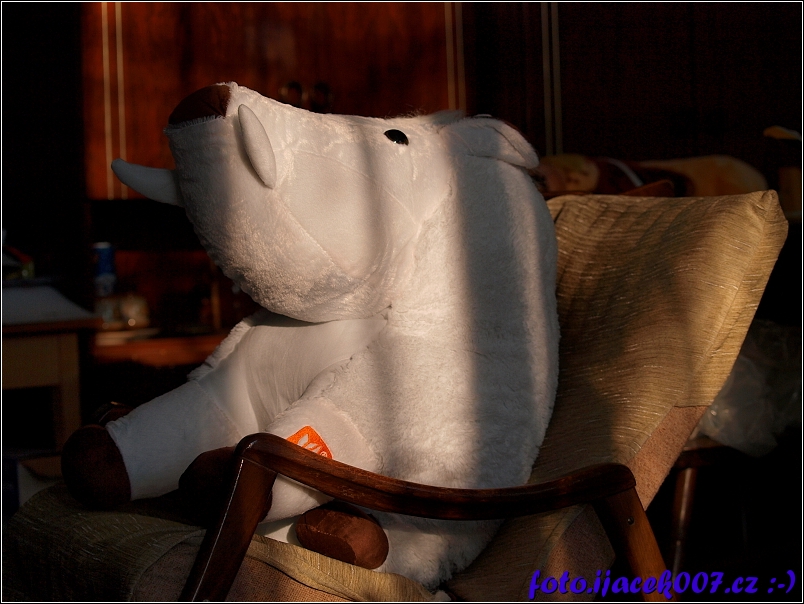 prasátko v houpacím křesle.
