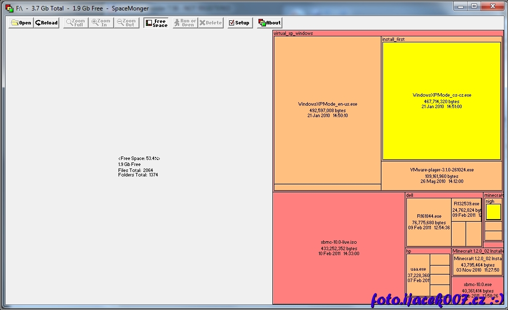Pohled na vizualizaci obsazení pevného disku.