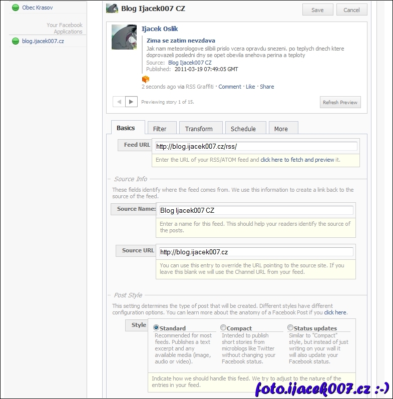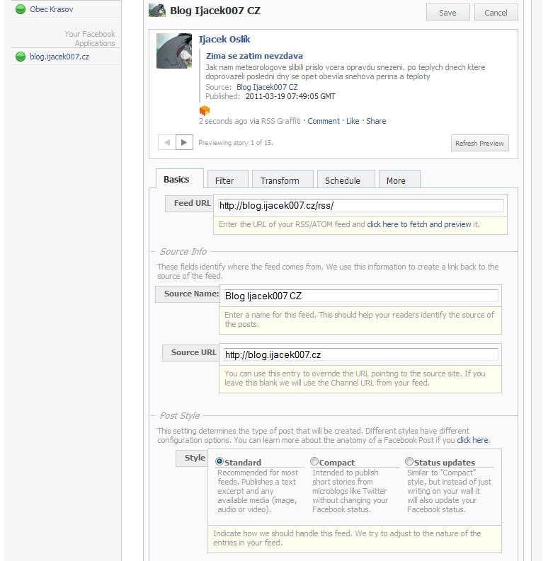 Aplikace pro automatickou publikaci na facebooku