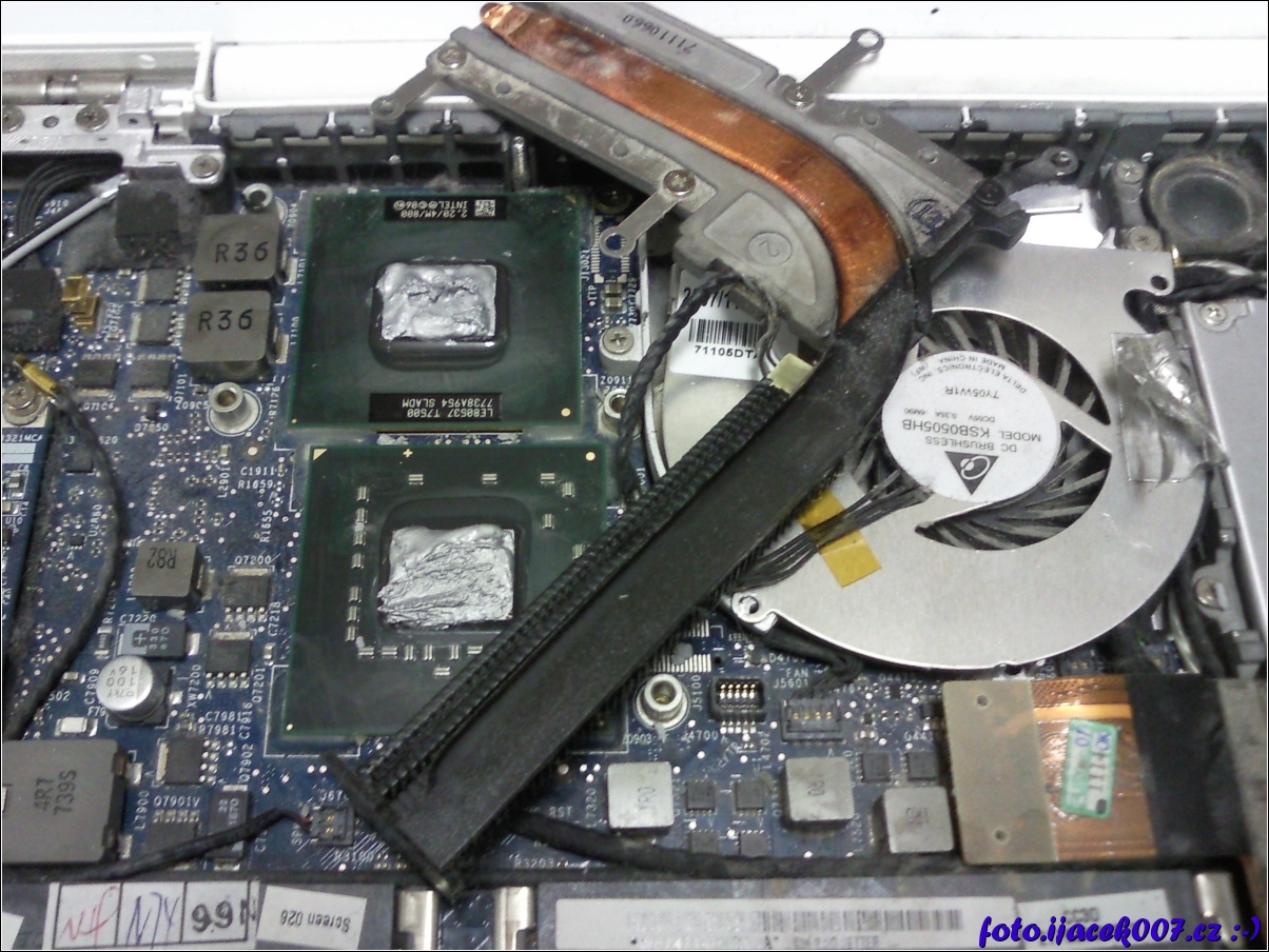 pohled na detail chladiče a nové chladící pasty na procesoru a grafickém čipu notebooku