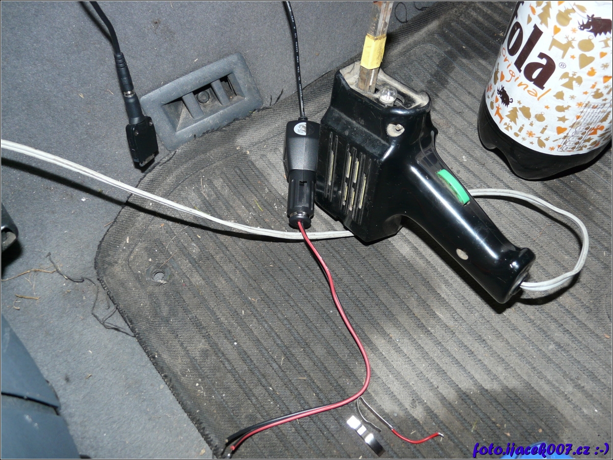 pohled na upravený napájecí adaptér s připravenou kabeláži