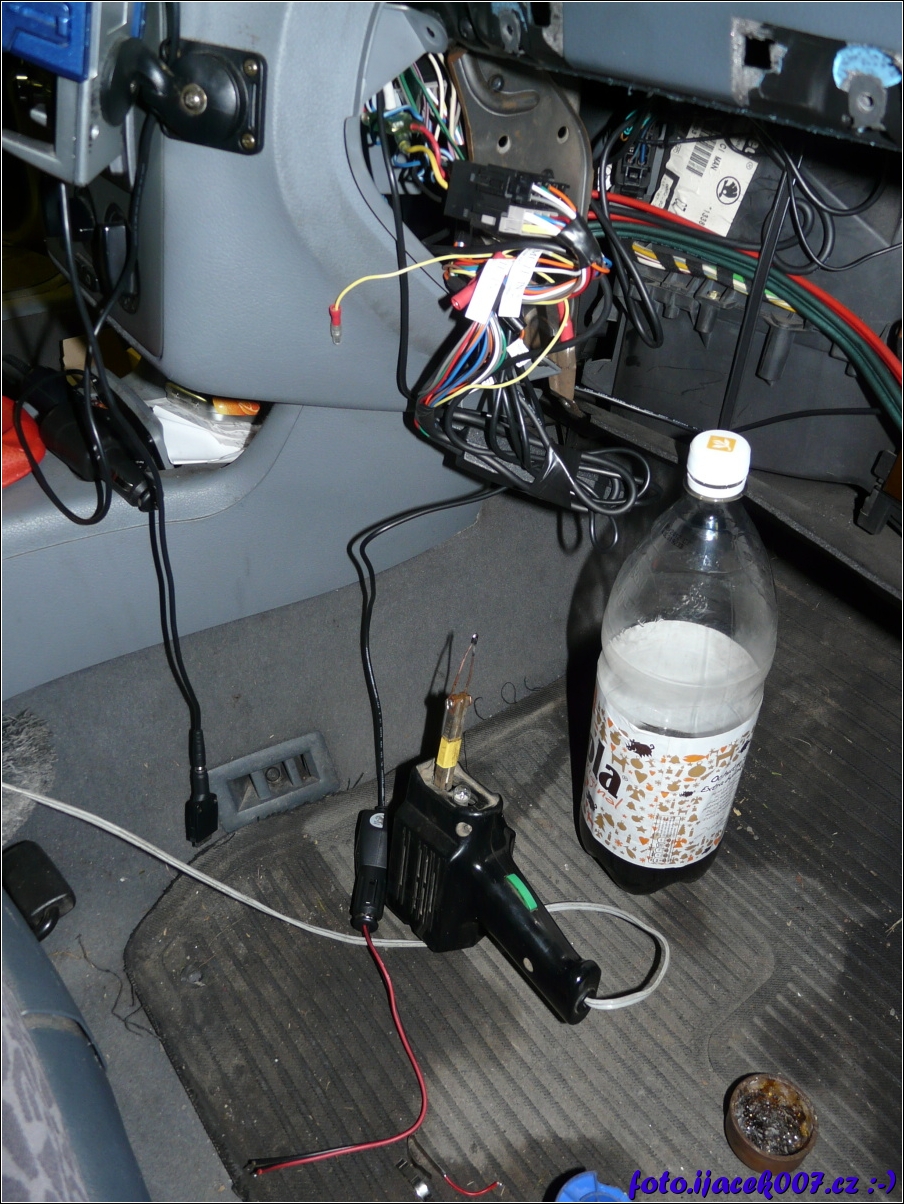 pohled na kabeláž rádia napojení hansfree parrot a napajení kamery