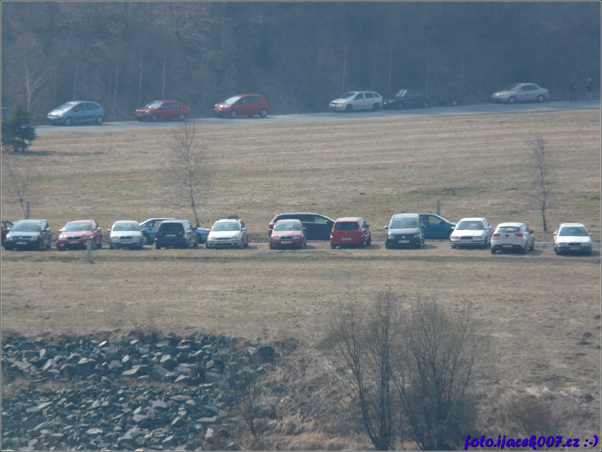 pohled n zaparkovaná auta u hráze slezská harta