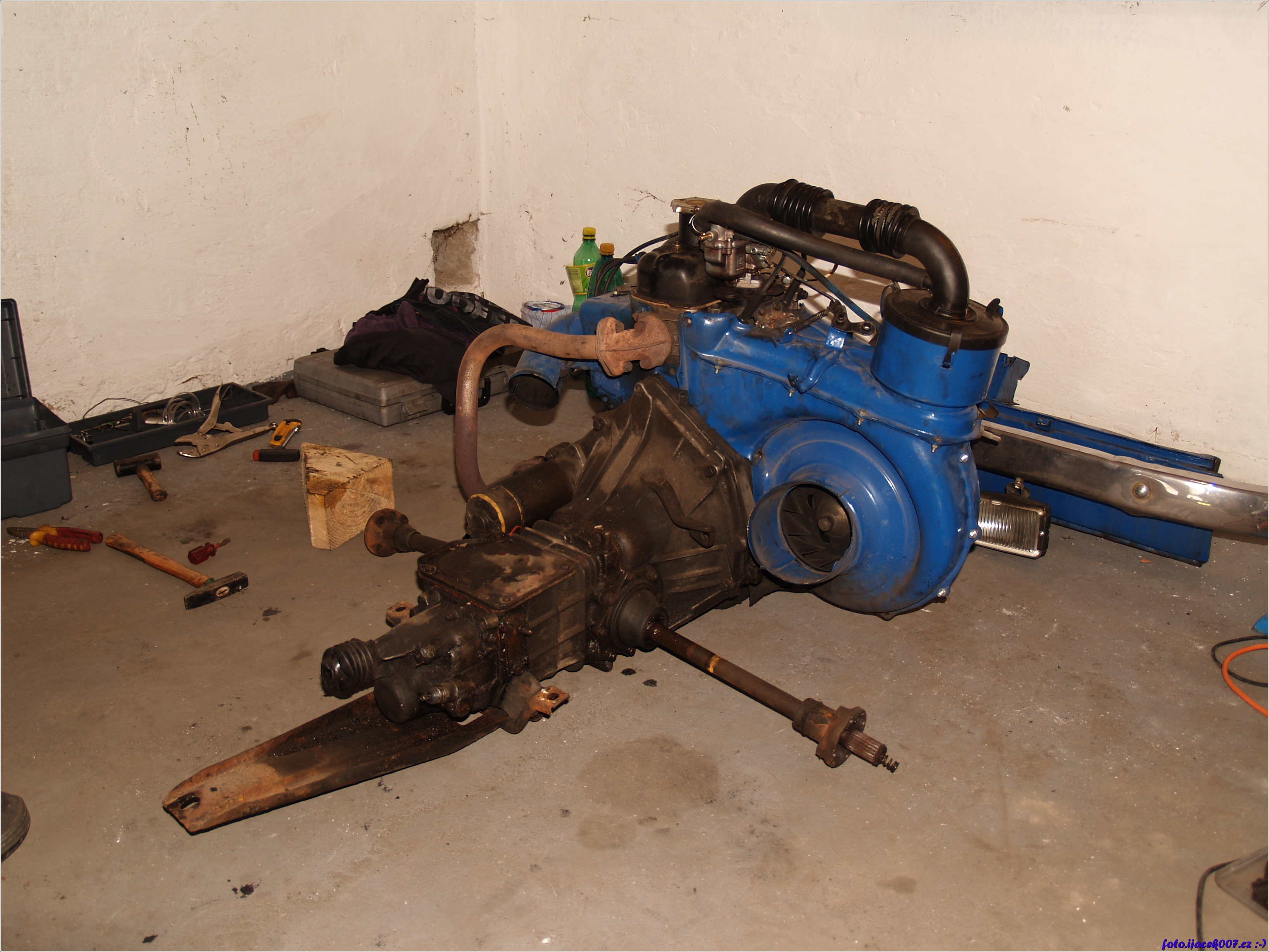 takto vypadá celý motor Malucha , převodovka i poloosy