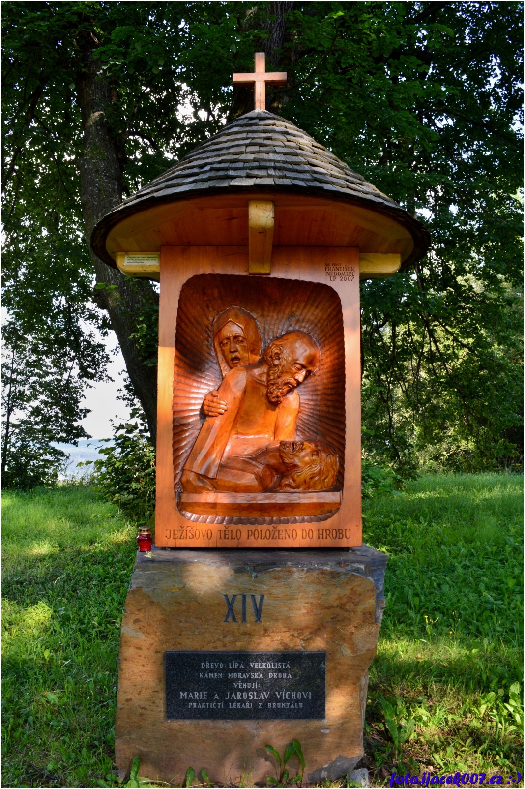 křížová cesta vyřezávaná podél lipové aleje vedoucí na Uhlířský vrch