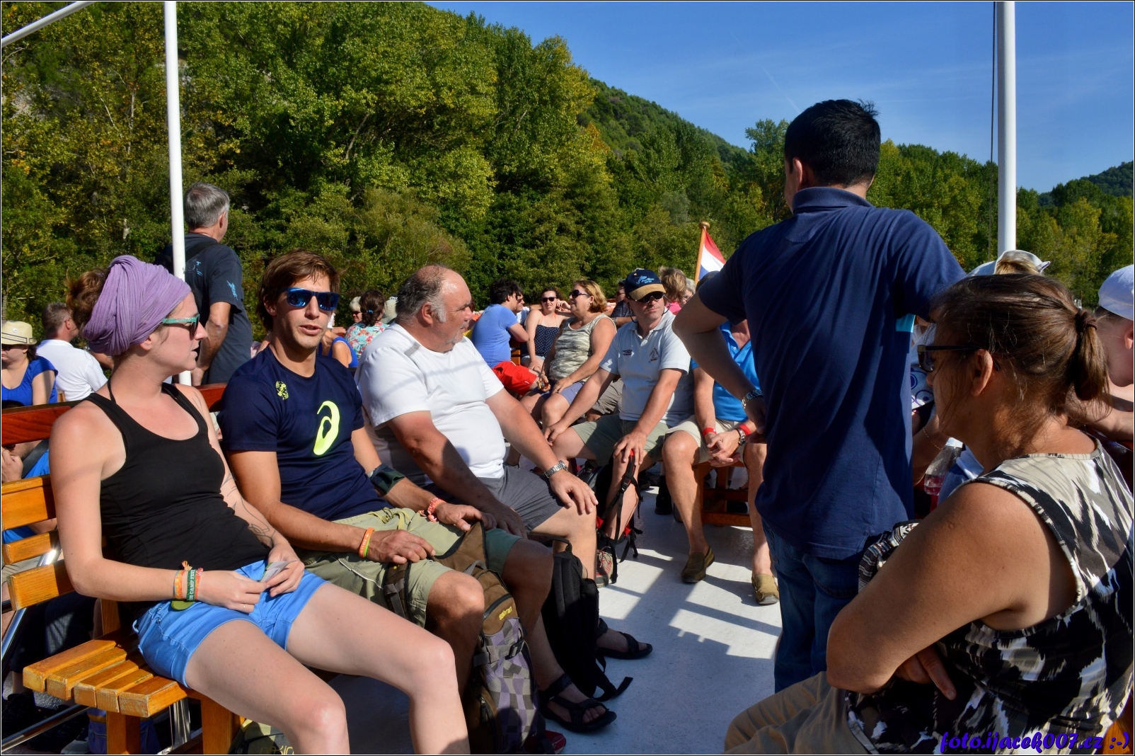 Pohled na lidi využívající lodní dopravu ze Skaradinu do národního parku KRKA