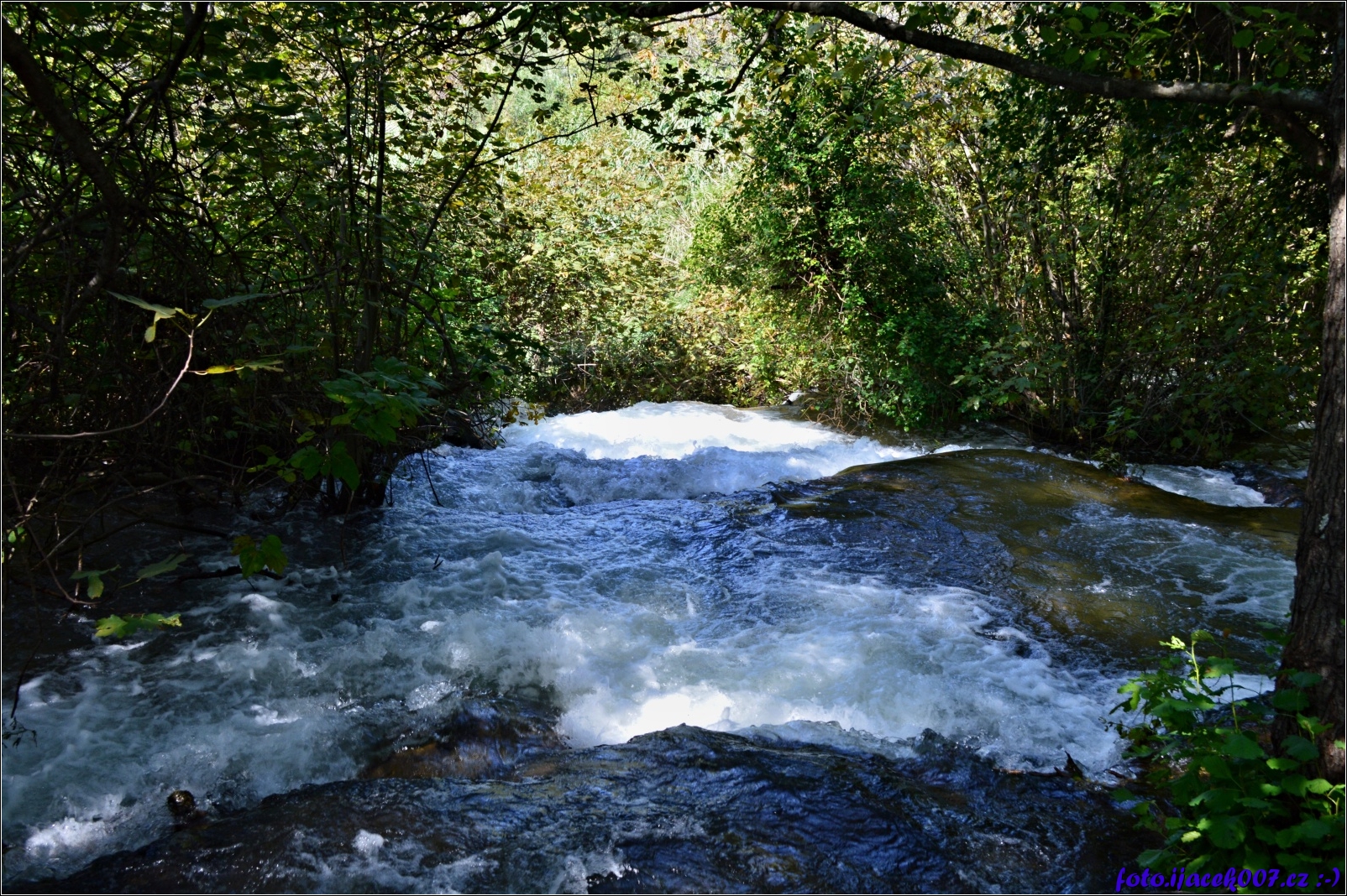 pohled na jeden z menších vodopádu z vrchu.