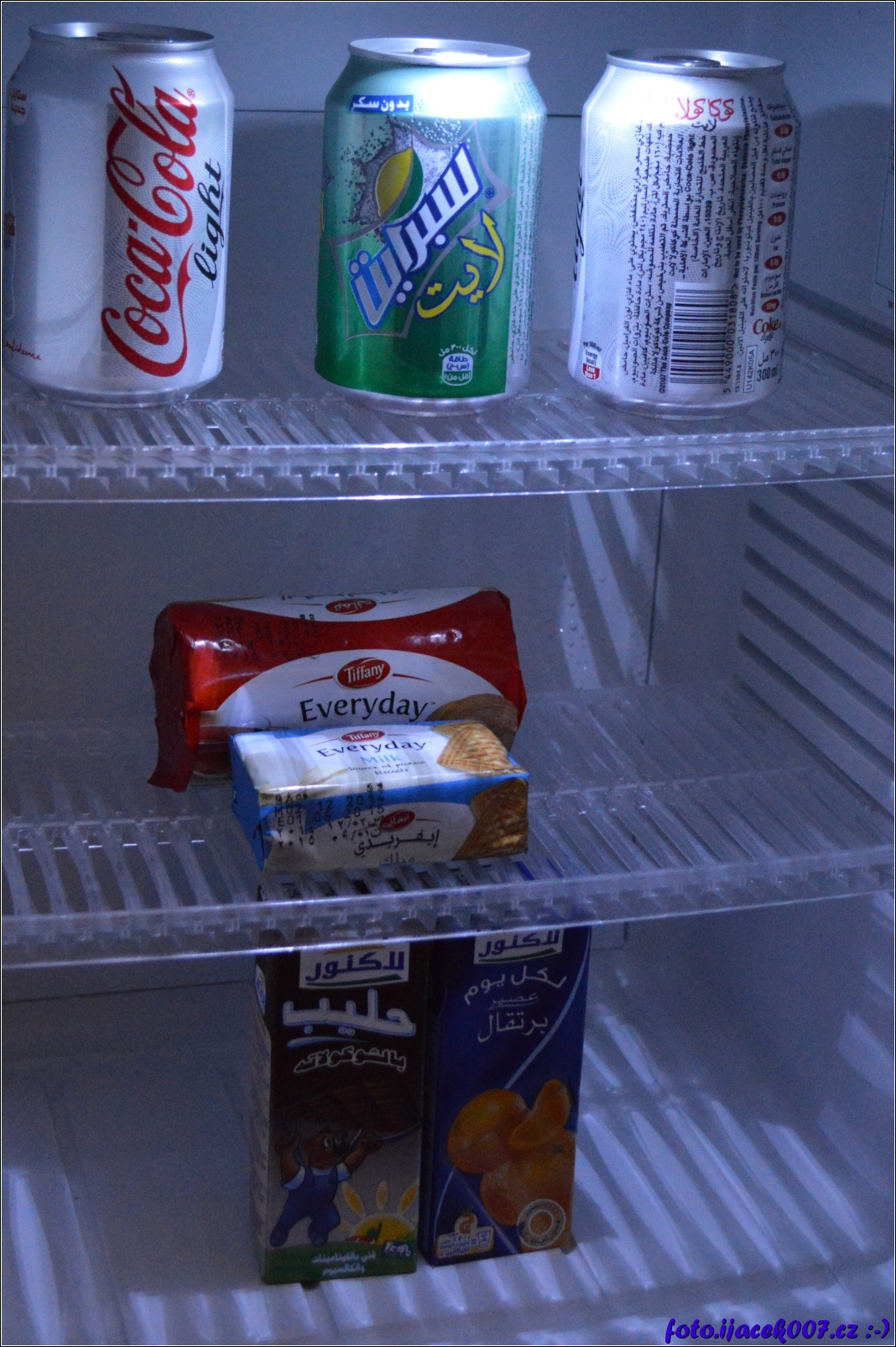 pohled do ledničky tedy minibaru která byla každý den doplňována