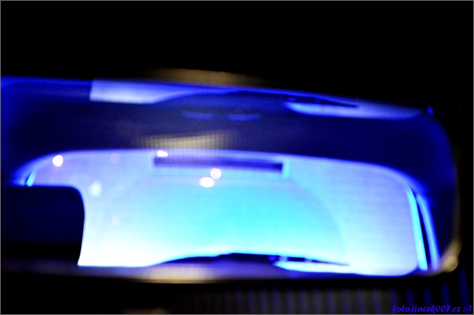 odlesk policejního světla ve zpětném zrcátku díky této fotce jsem naštval policistu.