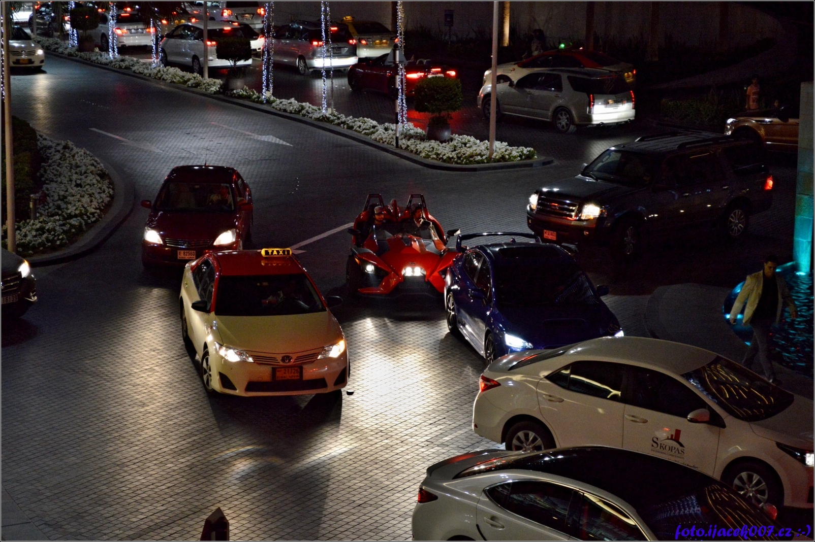 pohled na rozmanitost dopravních prostředku v Dubaji