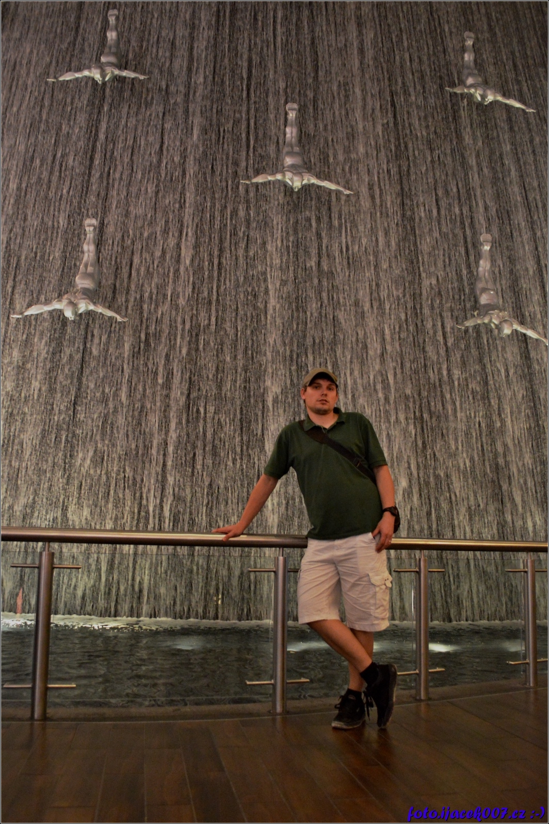 póza u vodopádu který je součástí nákupního centra v Dubaji