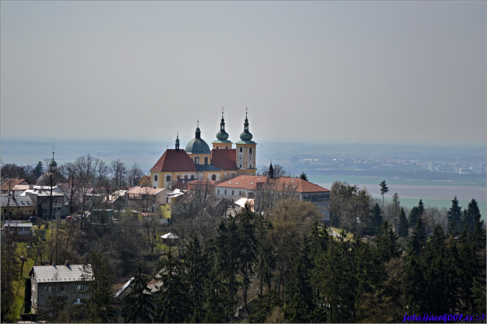 pohled na baziliku z rozhledny v zoo