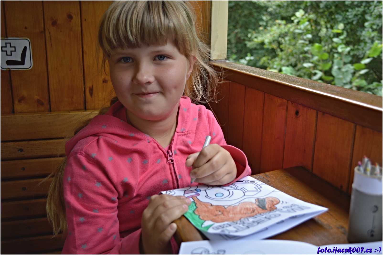 děti ve vlaku také dostali omalovánky a byly jim zapůjčeny pastelky aby si mohly malovávat pokud je koukání do okolí omrzelo.