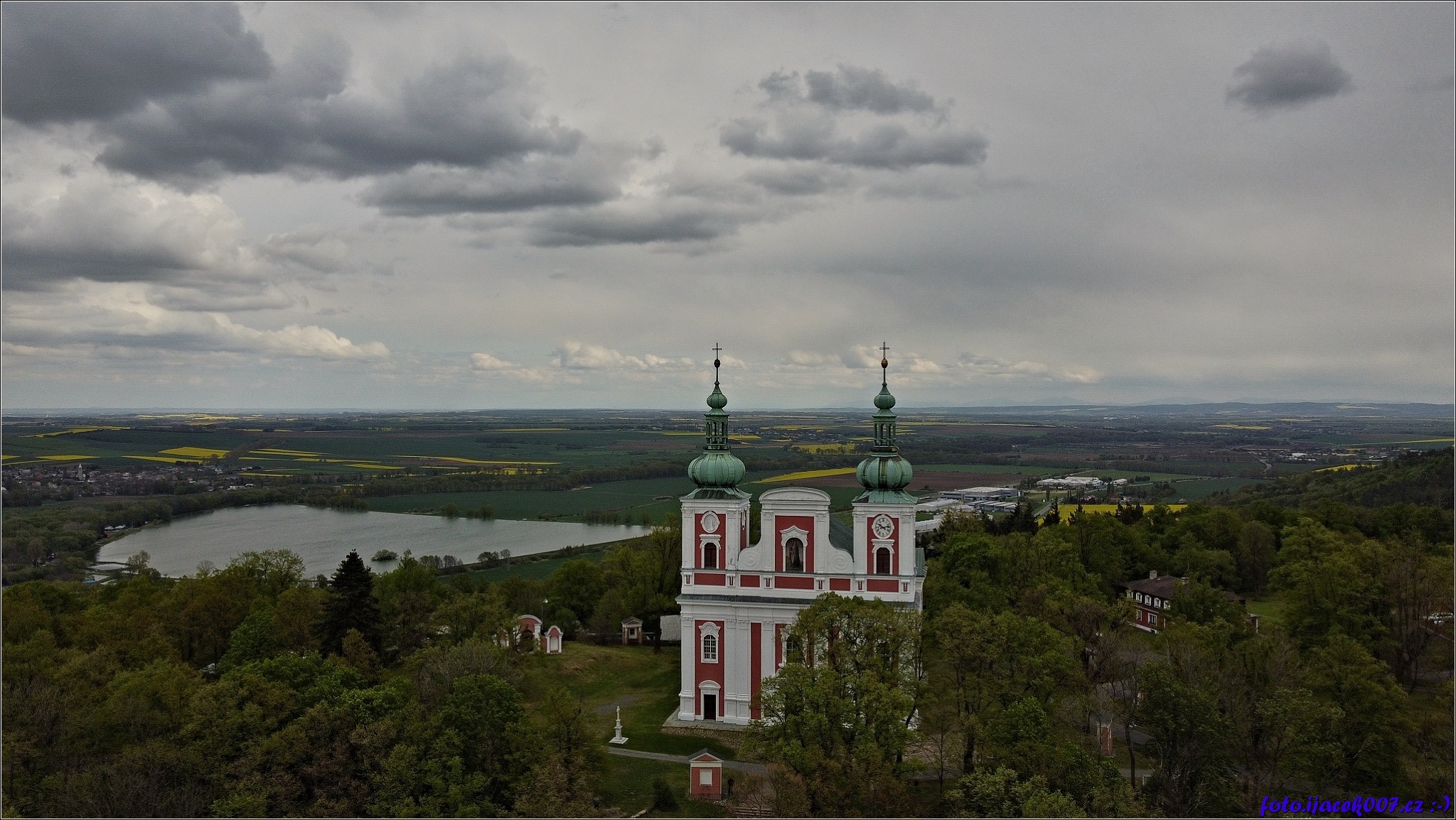 Pohled na kostel na vrcholu Cvilínu nad Krnovem.