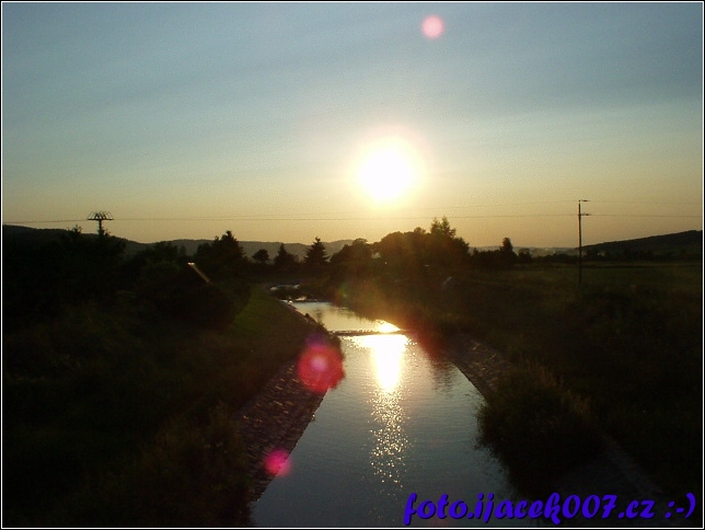 pohled na západ slunce nad řekou Opavici