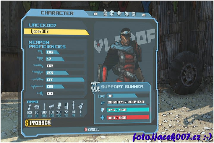 informace o herni postavě skušenostech a zbraních