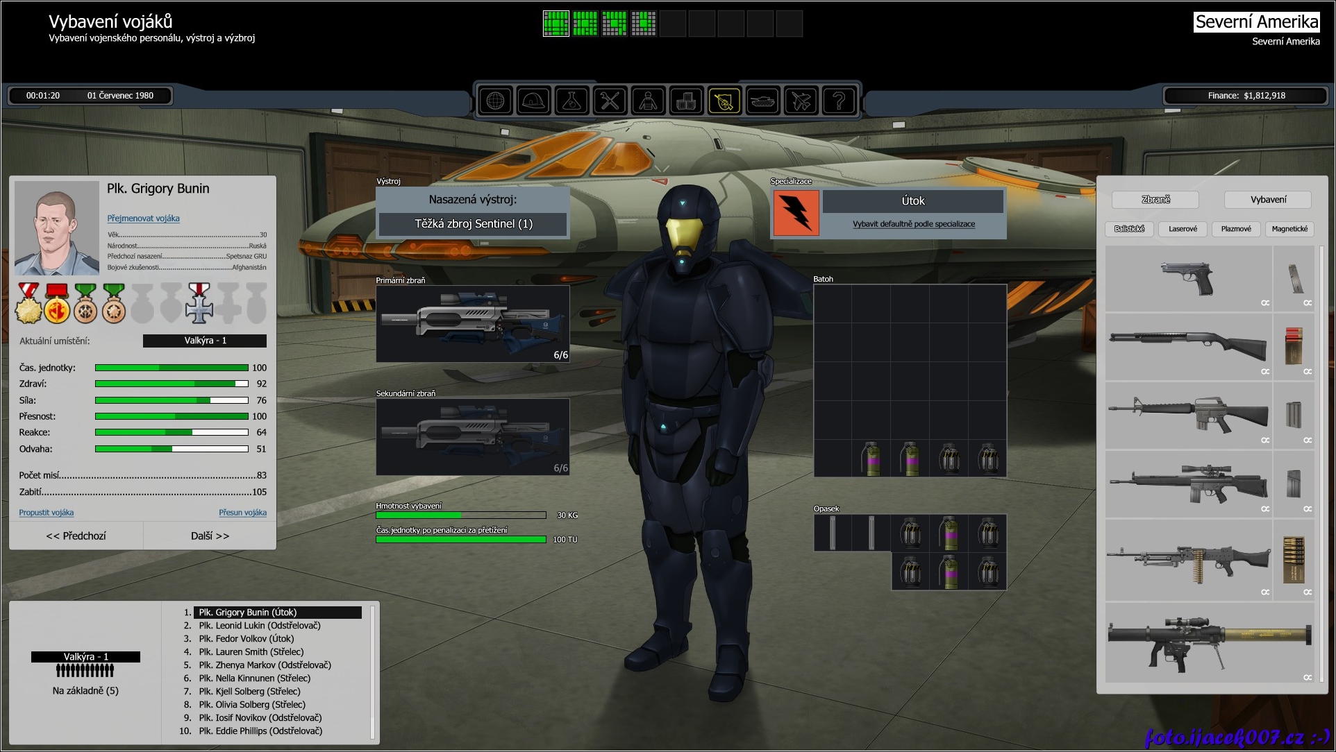 každého vojáka můžete vybavit vybavením ochranným oblekem či granáty podle toho kolik je schopen voják unést.