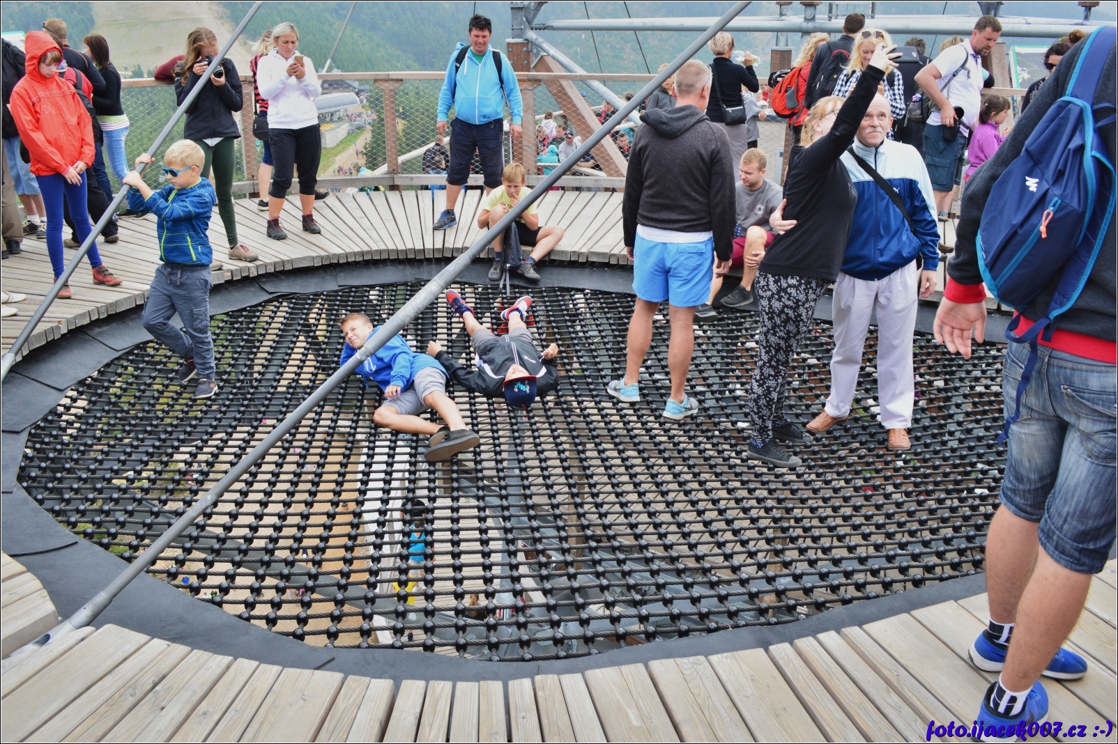 uprostřed vyhlídkové plošiny je síť s velmi zajímavým výhledem