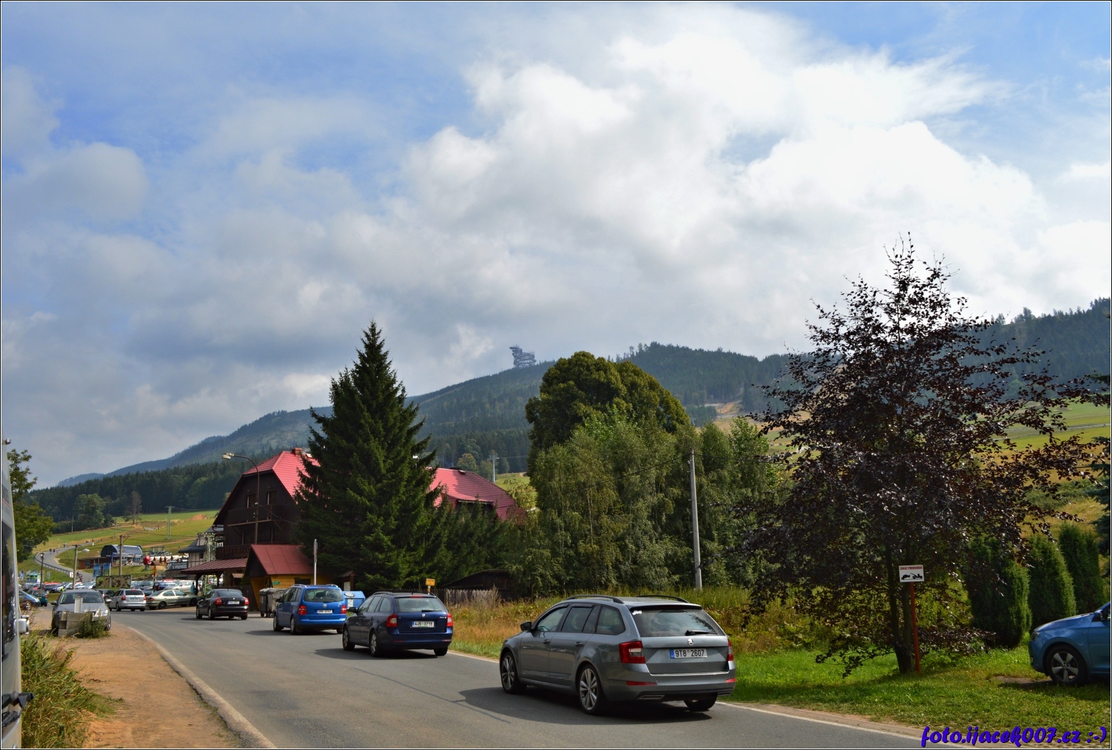 auto za autem míří ve volnu a pěkném počasí na Stezku v oblacích