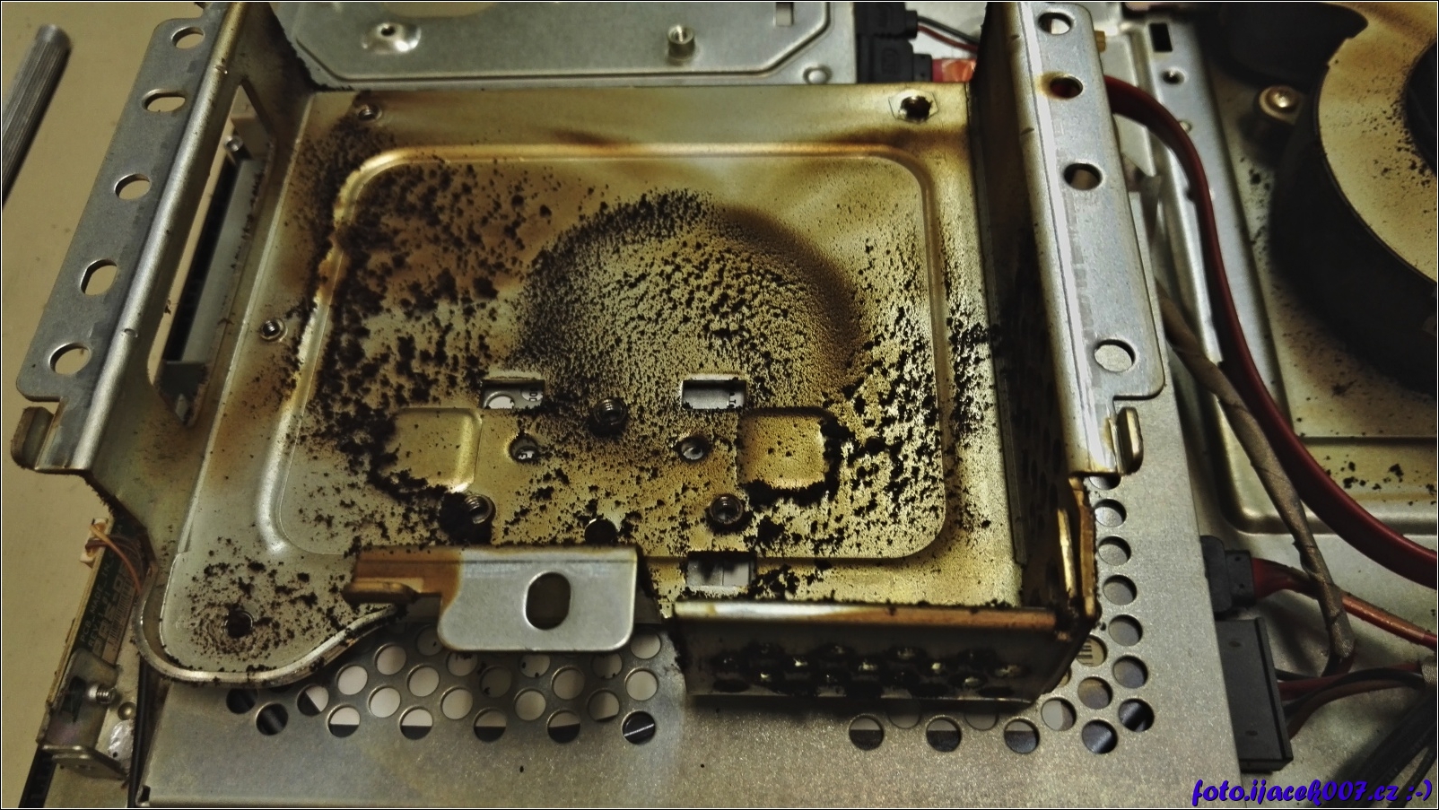 pohled na nečistoty na krytu ventylátoru