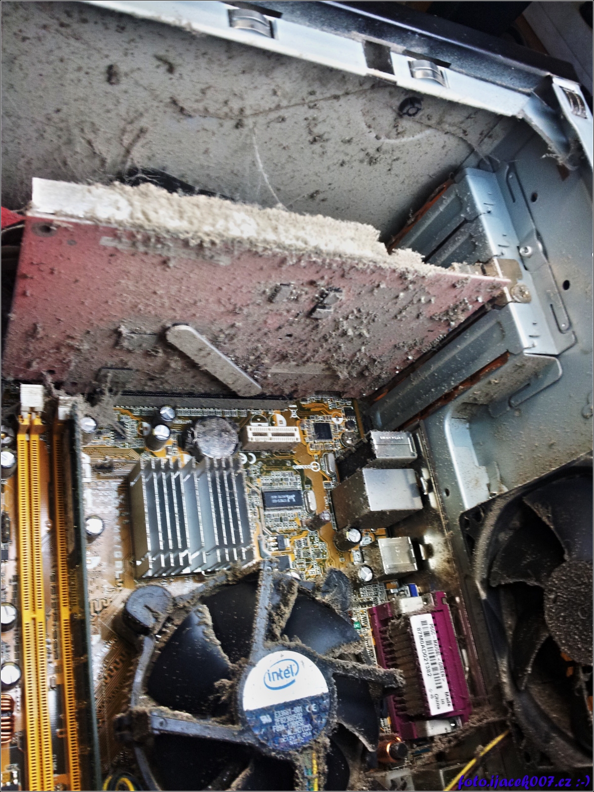 prach na základní desce chladiči CPU a grafické kartě