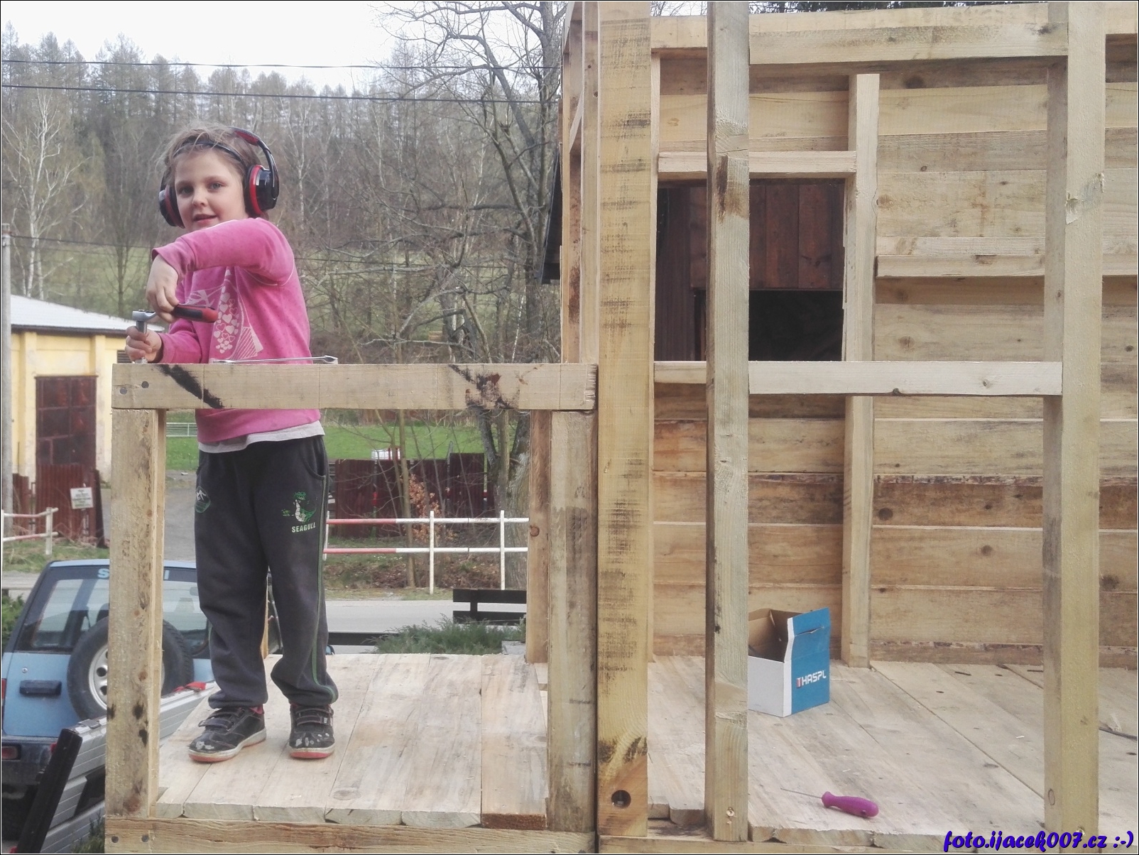 dcera pomáhá na svém domečku