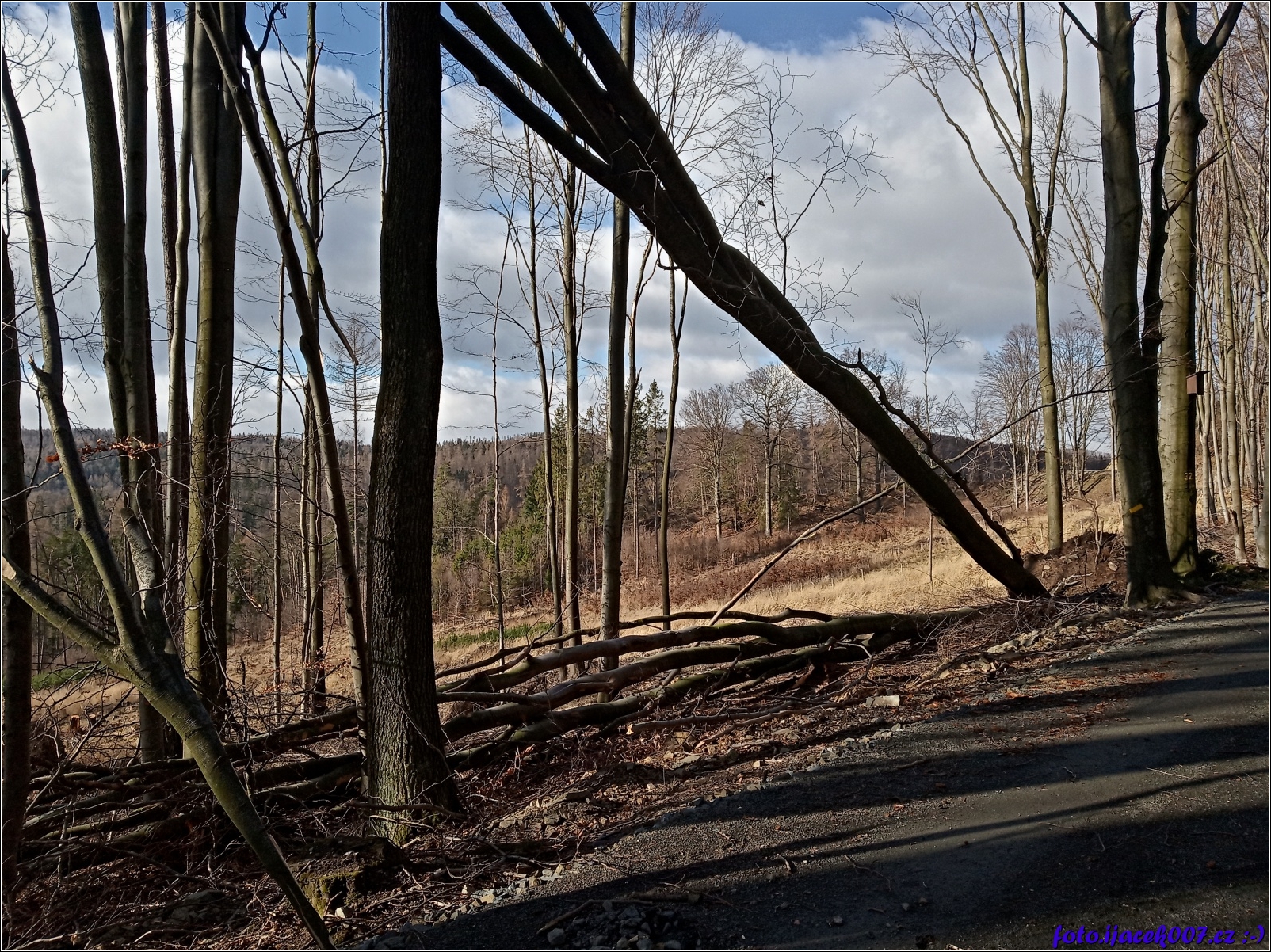 smutný pohled na poválené stromy