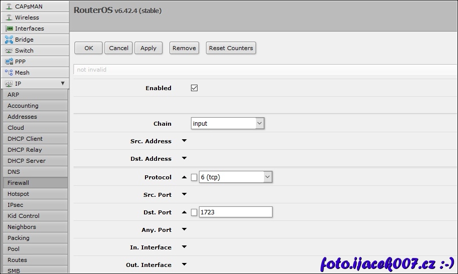 nastaveni povolení portu 1723 pro pptp vpn
