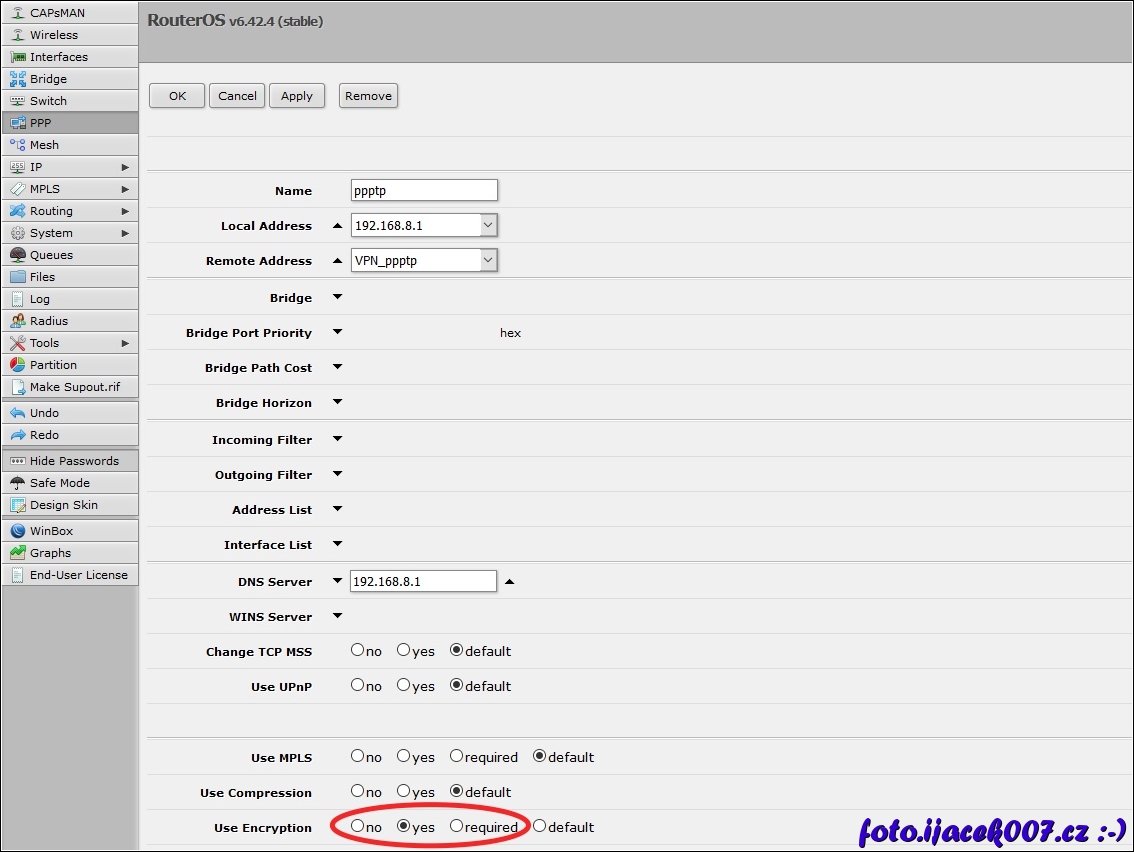 profil na pptp vpn a nastavení kódování