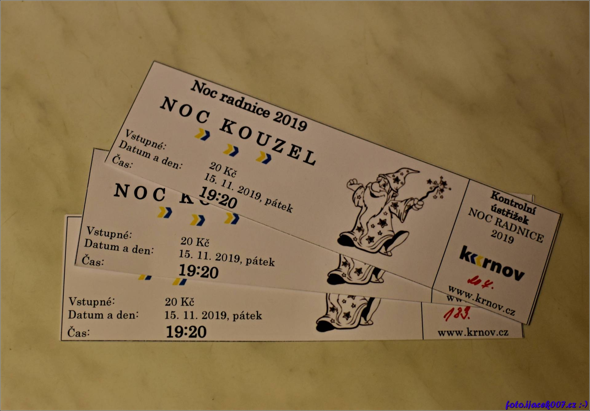Vyfocené vstupenky na Noc kouzel radnice