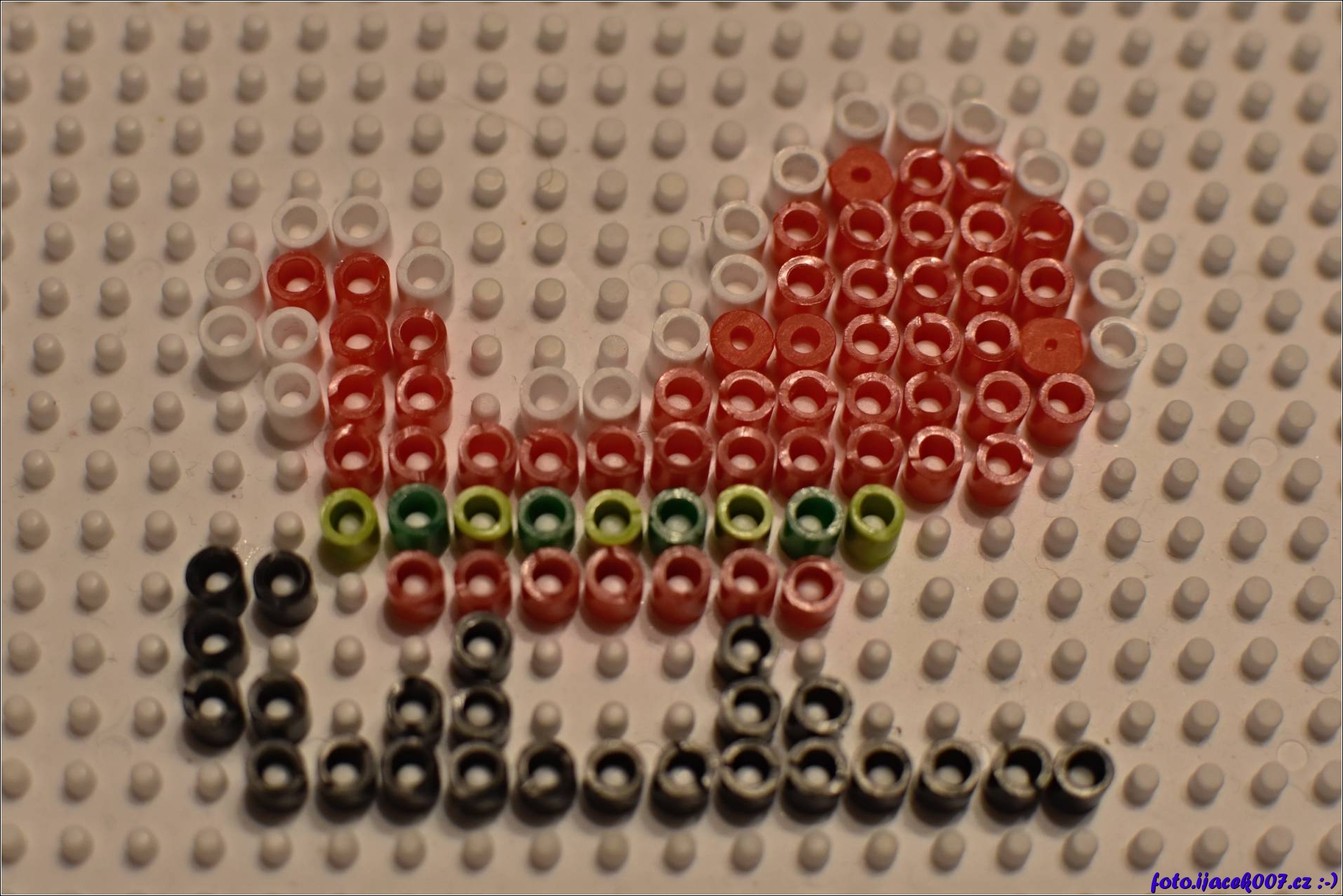 Vzor váočních saní sestavených koralky Pyssla.