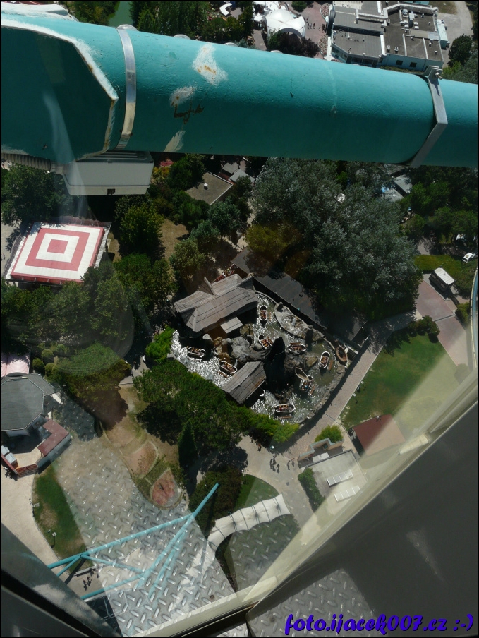 výhled na atrakce z ruského kola.