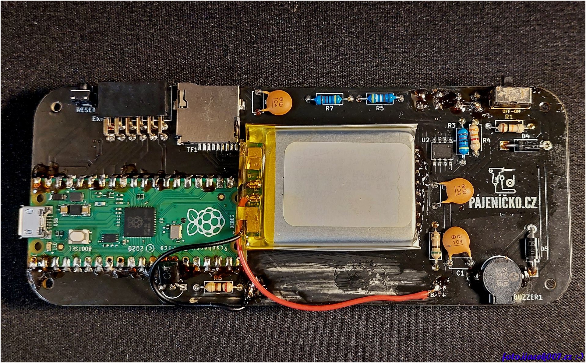 Zadní část stavebnice a pohled na baterii i raspberry