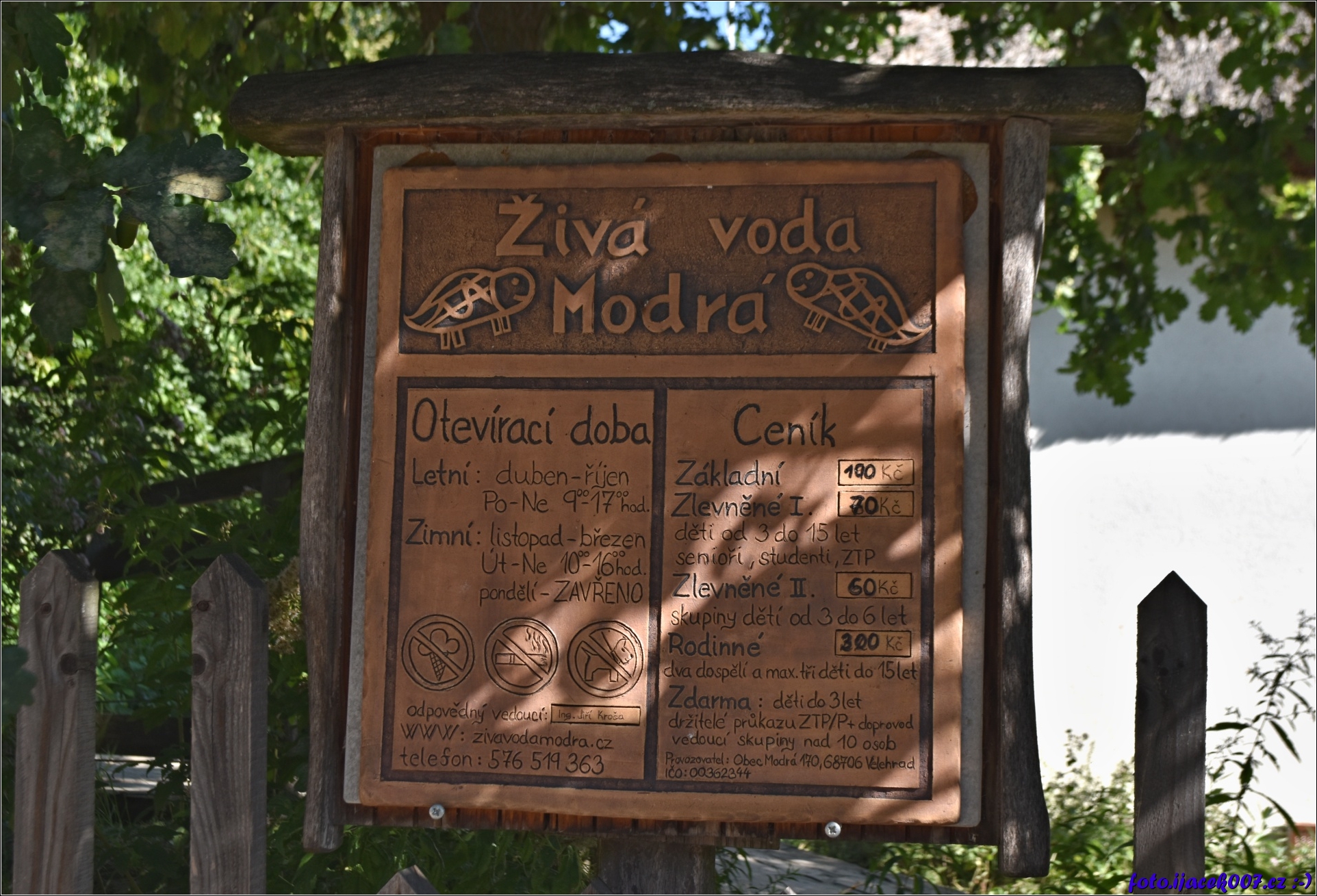 hliněná tabule se základními informacemi o cenách i otevírací době.