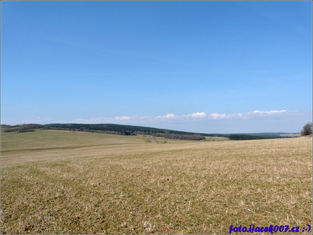 pohled na louku a v dáli les