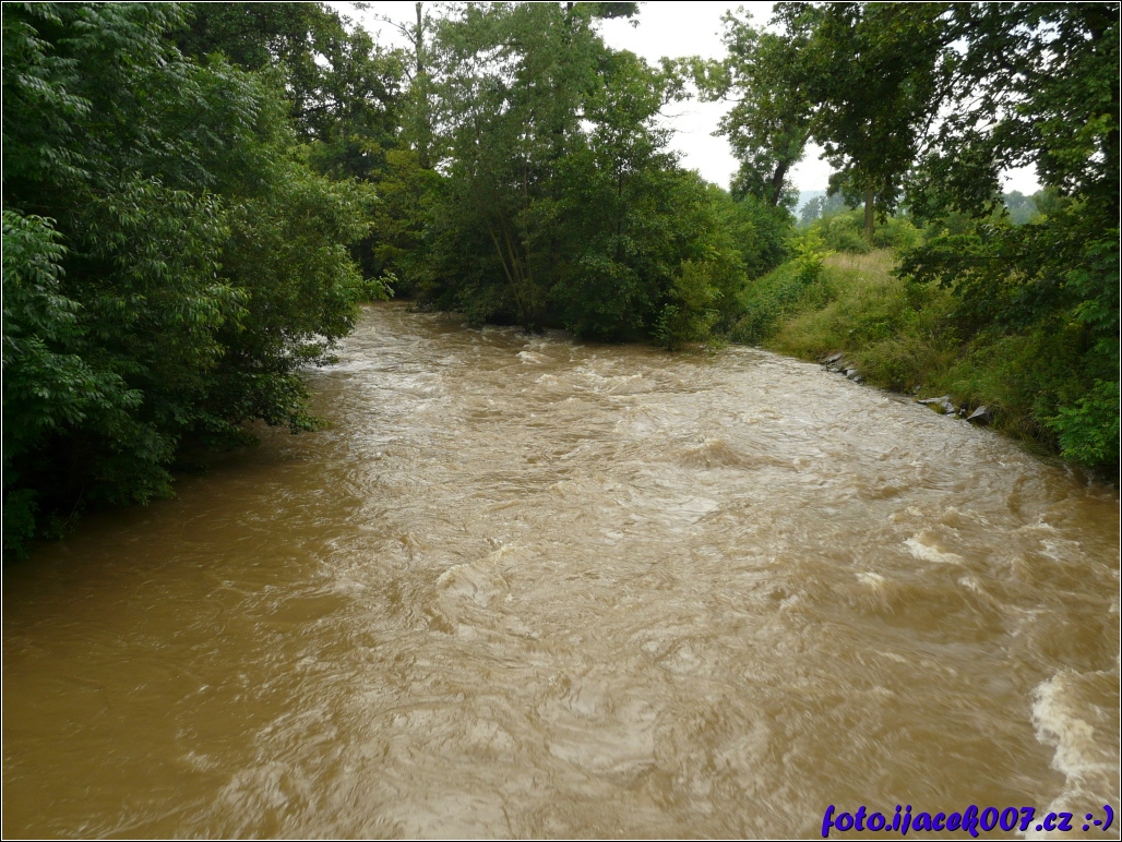 pohled proti proudu řeky s male pěší lavky v kostelci.