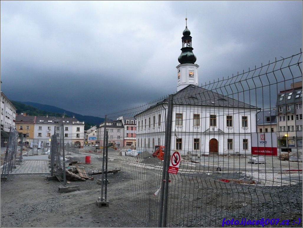 Náměstí v městě Jeseník při rozsáhlé rekonstrukci