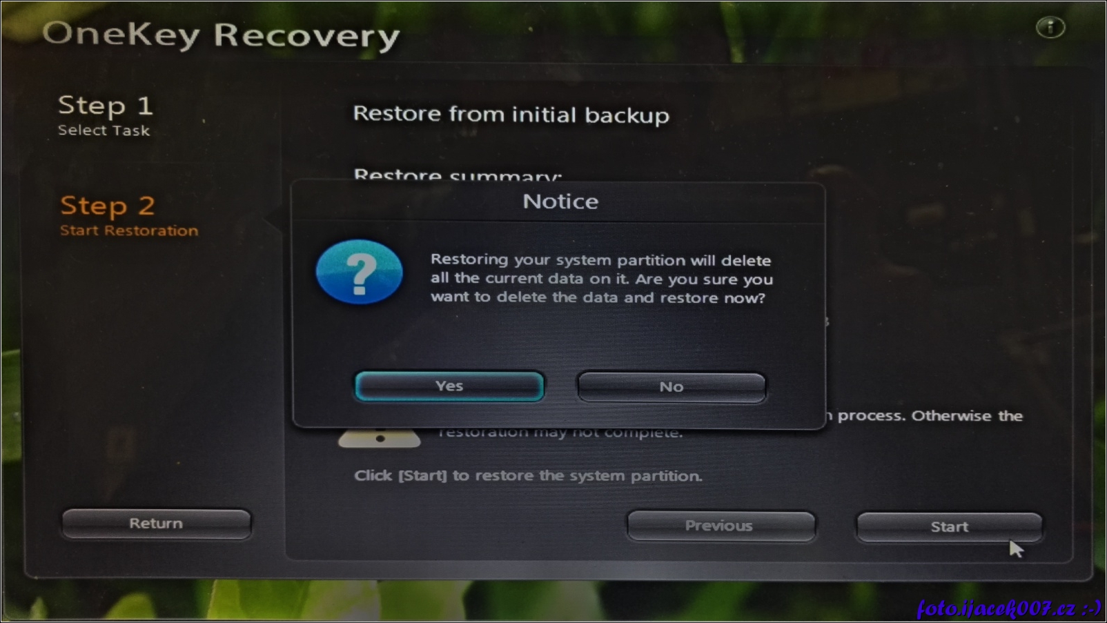 upozornění že během akce budou z počítače odstraněny všechny uživatelské data