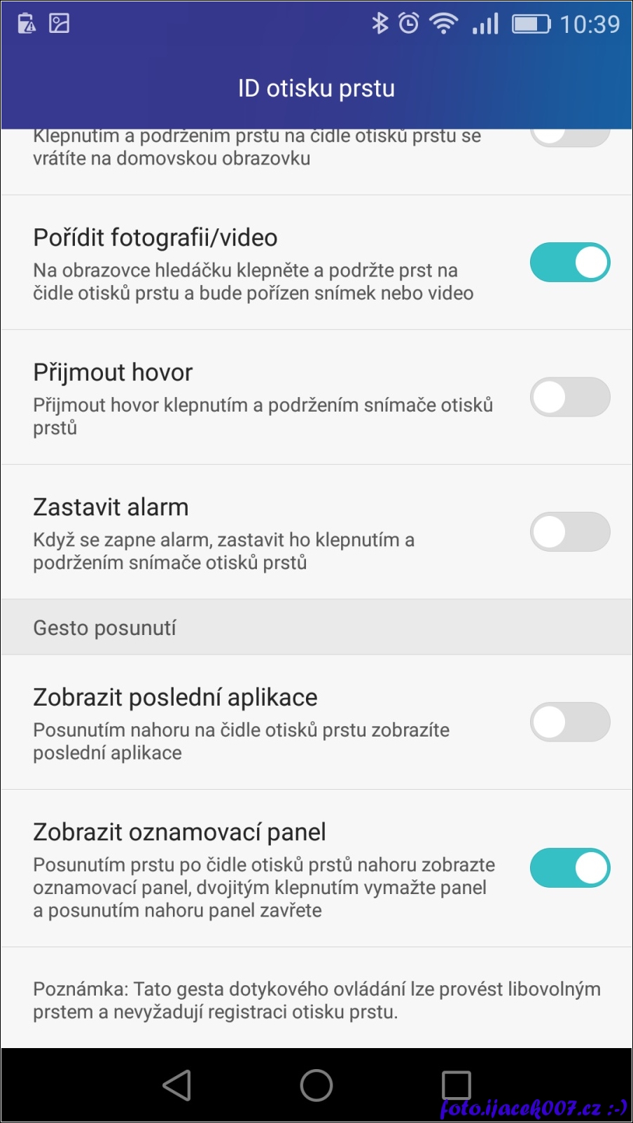 android nastavení otisku prstu