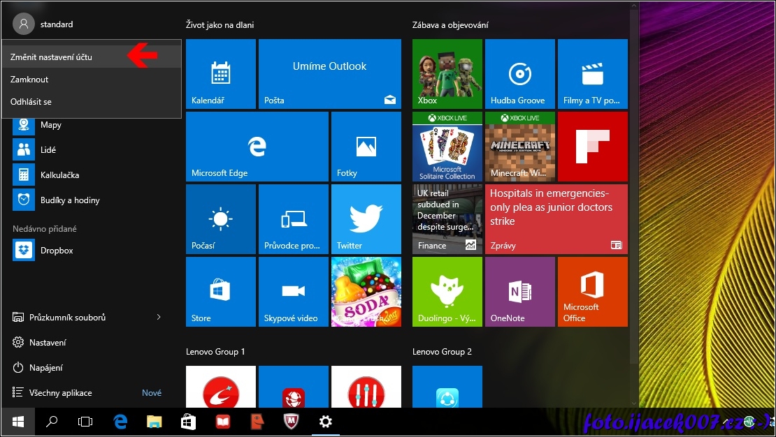 volba pro změnu nastavení učtu Windows10