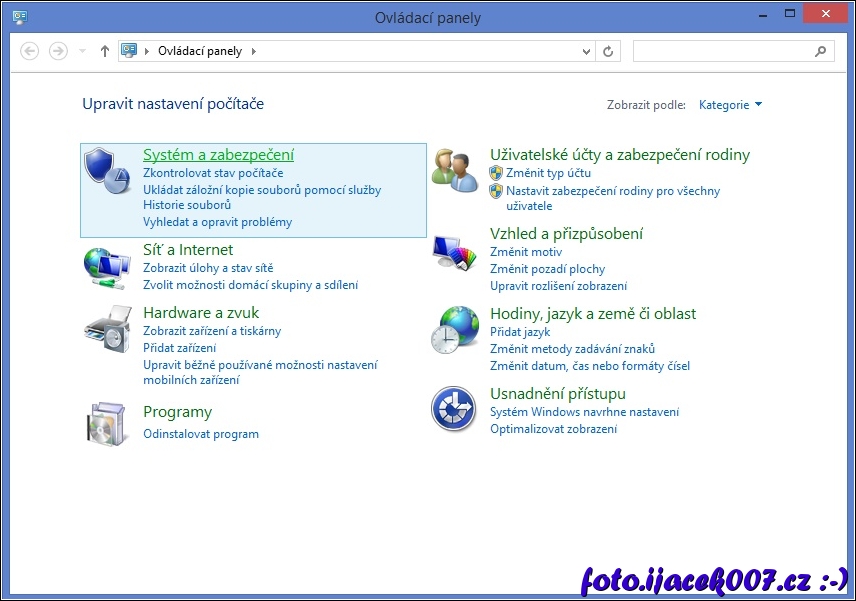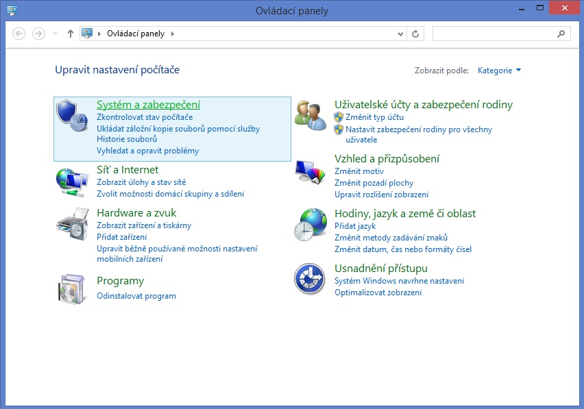 ovládací panely systému položka systém a zabezpečení.