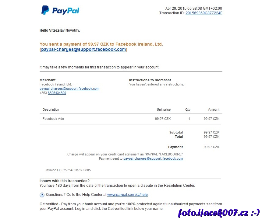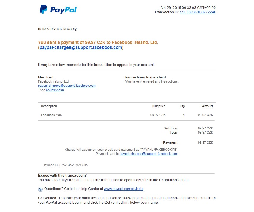 facebook platba za reklamu pres paypal
