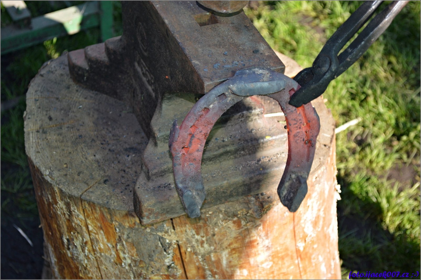 rozžhavená podkova z výhně se na kovadlině upraví