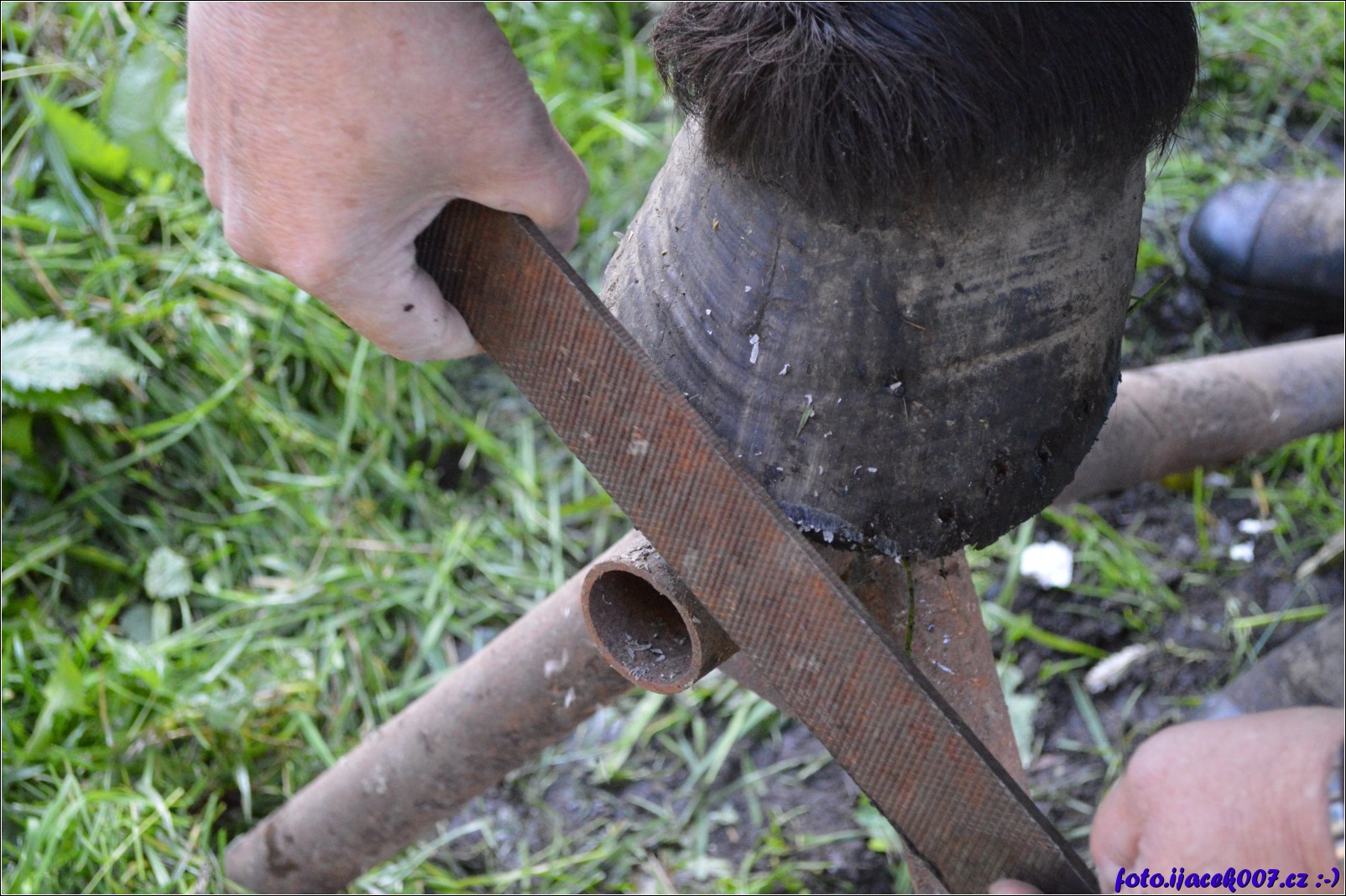 kopyto se musí zarovnat a upravit než se na něj vrátí podkova