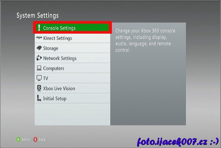 nastavení konzole