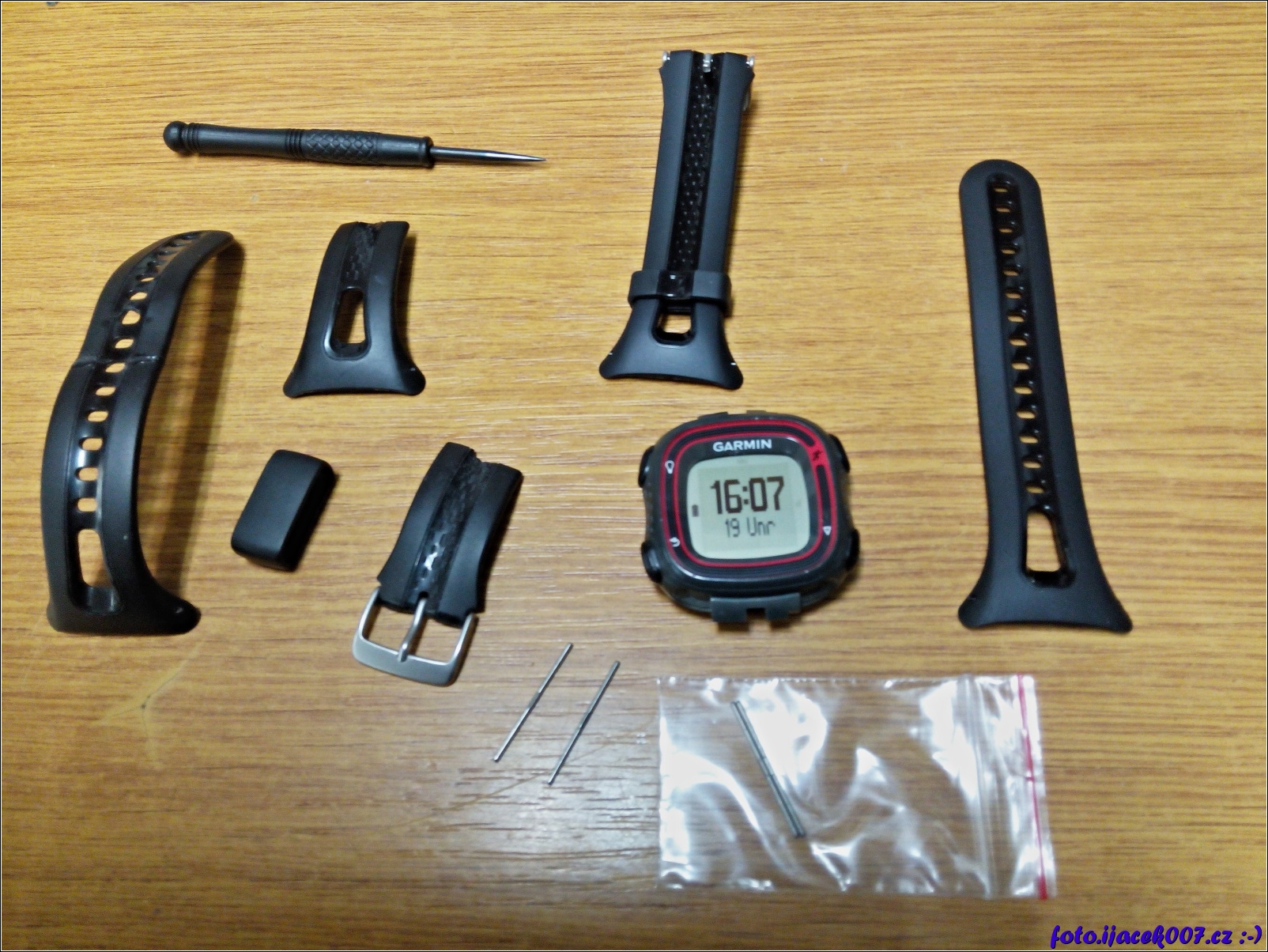 pohled na hodinky s demontovaným starým řemínkem