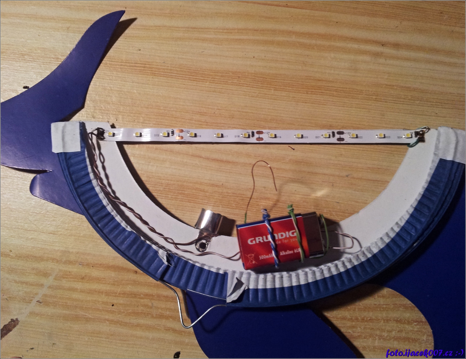 pohled do lampionu na umístění led pásku a uchycení baterie