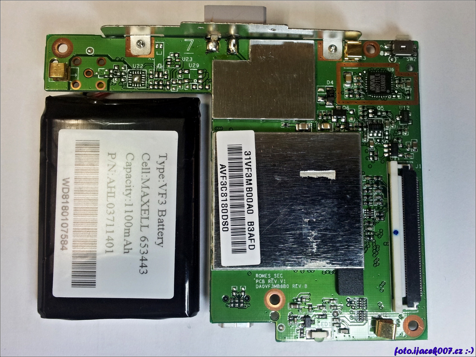 základní deska přístroje s připojenou baterii